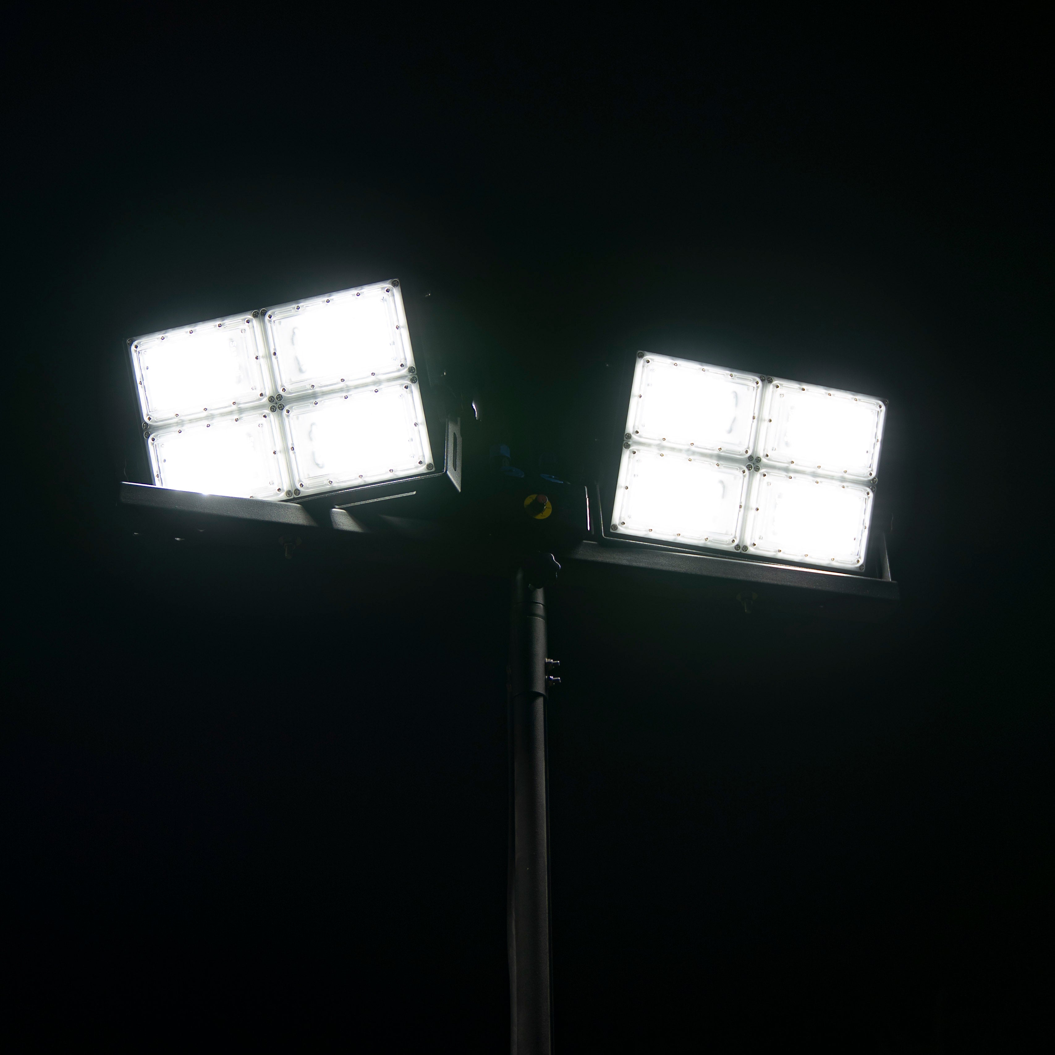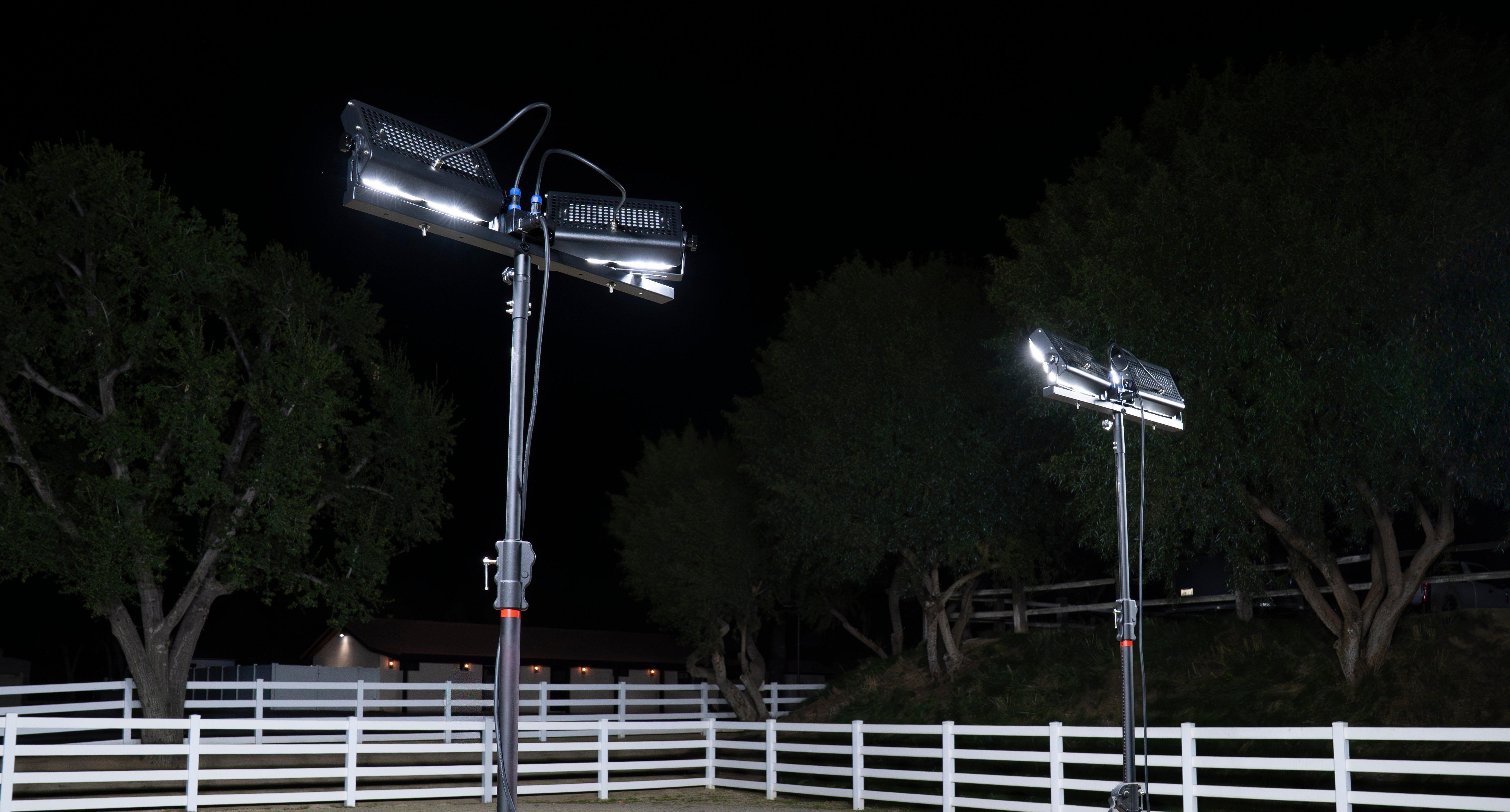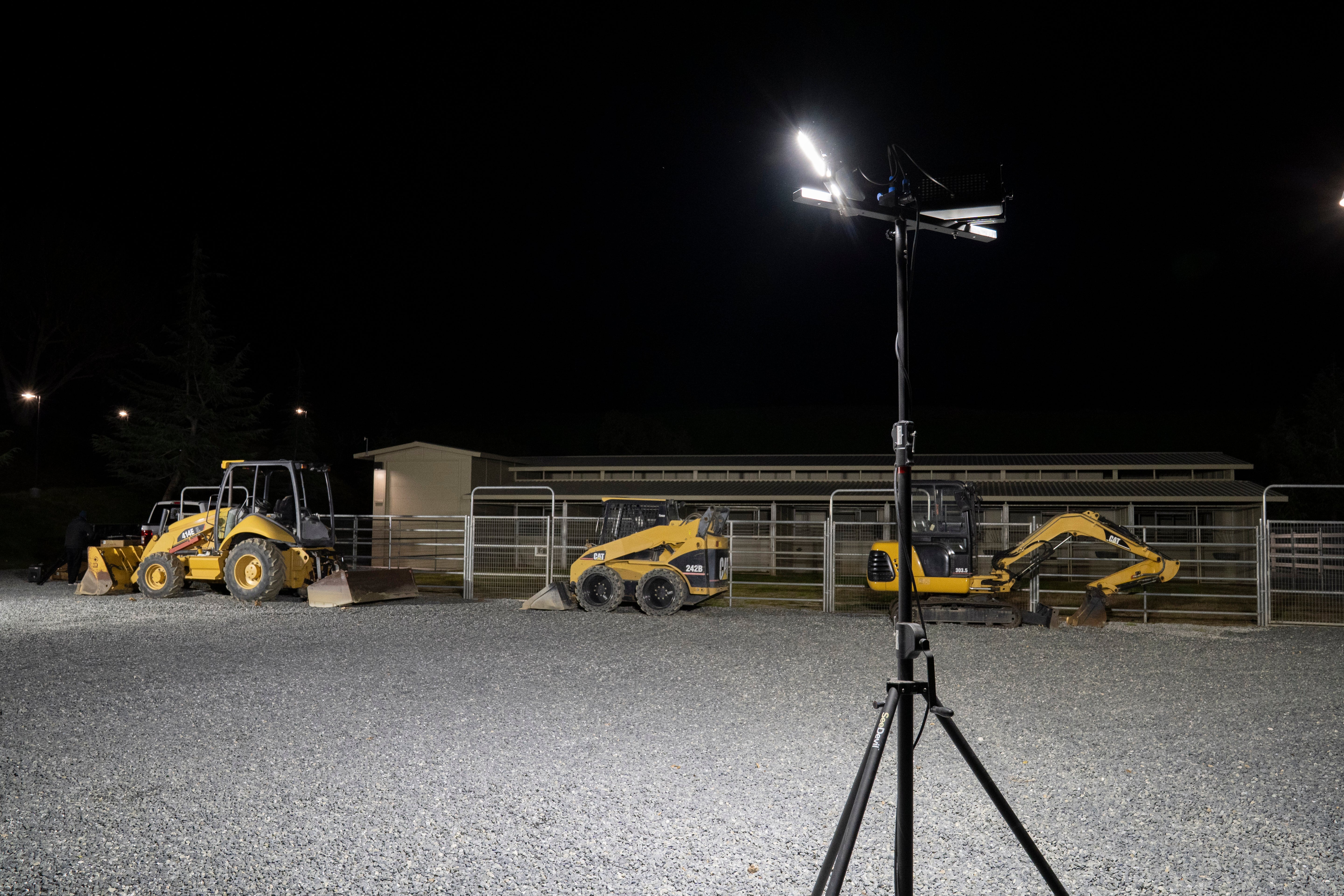 The SeeDevil™ 600W Flood Light is our most versatile flood light. Shining with 78,000 lumen, this intense light has the power to bathe a wide area in bright illumination. The power of the LED panels can be precisely focused by adjusting the light on all three axes, and intensity can be finely controlled with the stepless dimmer switch. Mounted on our 12ft tripod, illumination reaches far to light up everything from sports fields to construction sites.